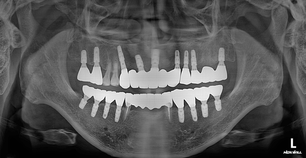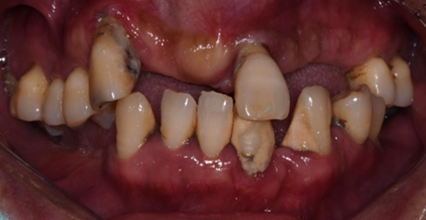 40대 남성 환자분으로, 전반적으로 치아들이 치주염에 이환되어 살릴 수 있는 치아가 거의 없었던 경우입니다.